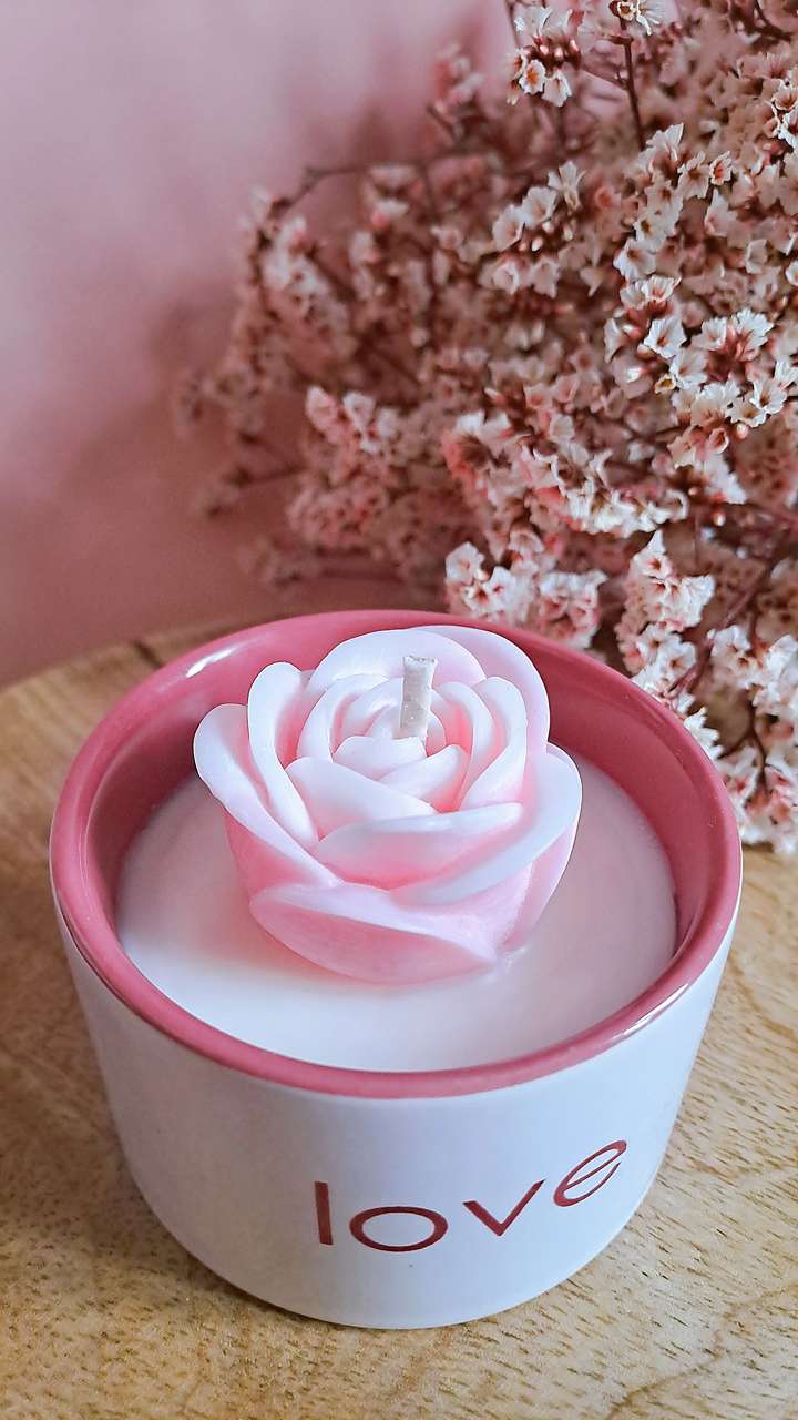 Bougie artisanale parfumée – Fleurs de Cire – Rose Passion & Patchouli Envoûtant