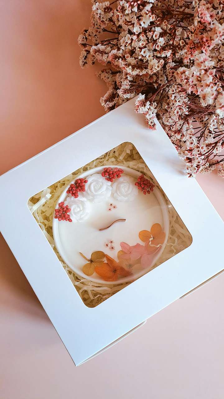 ✓ Fleurs séchées intégrées – Un véritable objet déco, notre bougie est sublimée par des fleurs séchées, pour une touche esthétique et poétique.