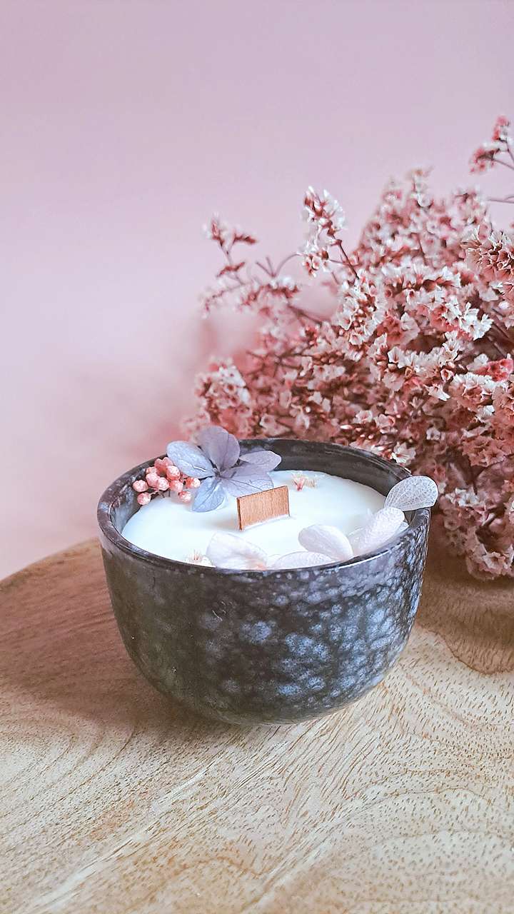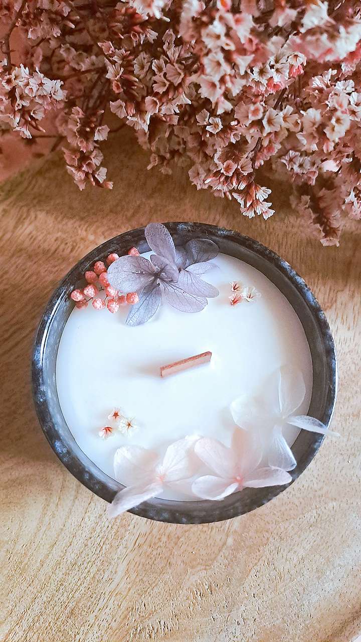 Un trio boisé pour tous les goûts : Bois de Oud, Bois de Rose et Bois de Santal | Cire de Soja 100% végétale | Mèches en bois & fleurs séchées | Fabriqué en France avec passion